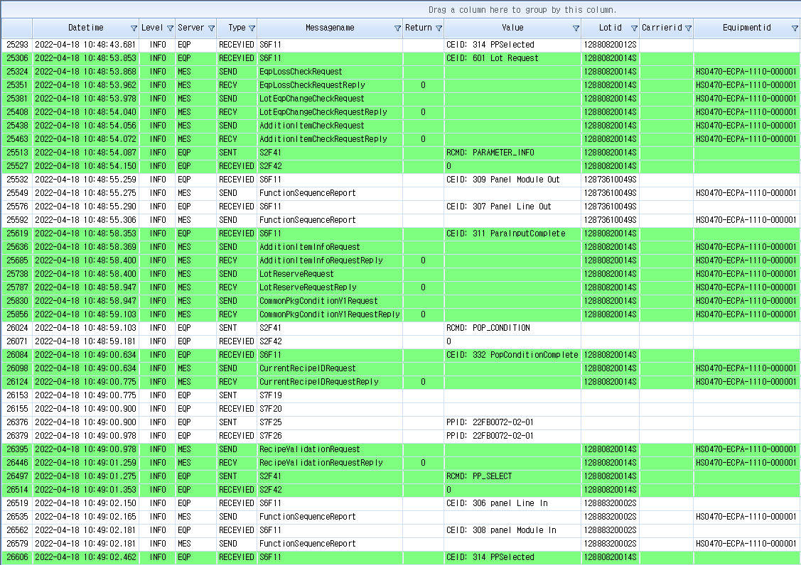 - [EQP] S6F11 - CEID: 601 Lot Request