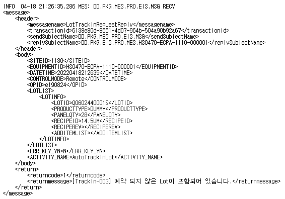 TroubleShooting: LotTrackInRequestReply