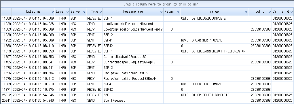 특정 LOT의 이력과 투입 Carrier 및 배출 Carrier 정보를 확인할 때...