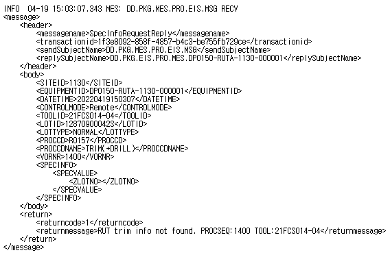 1. [분석 #1] RUT trim info not found. PROCSEQ:1400 TOOL:21FCS014-04